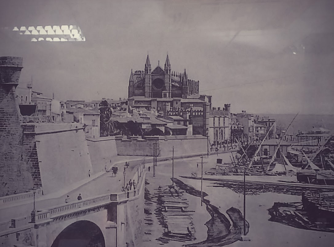 Back in time. the port of palma de mallorca with the cthedral de la seu