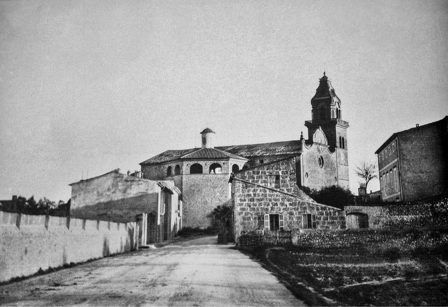 old photo of the church of santa maria. The church in Santa Maria, Mallorca, is a beautiful example of Gothic architecture, dating back to the 13th century. Its imposing stone facade and tall bell tower dominate the village skyline. Inside, stunning stained glass windows filter colorful light onto the stone floors. The church is a central part of community life, hosting religious services and local events. It's a remarkable historical landmark, reflecting the town's rich cultural heritage.